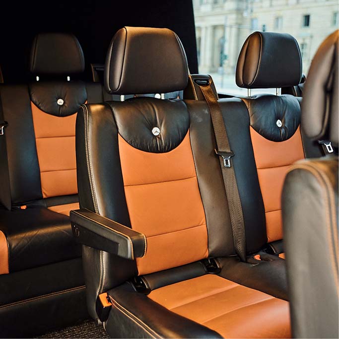 Für größere Gruppen können Sie unseren Mini-Bus mit 16 beziehungsweise 19 Sitzplätzen buchen. Der elegante Sprinter bildet die goldene Mitte zwischen unseren Limousinen und unseren Reisebussen. Er eignet sich hervorragend für Hochzeitsfeiern, Mitarbeiterausflüge und Flughafentransfers Ihrer Delegationen.
